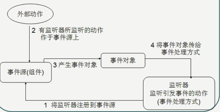 事件:每一个事件源都有自己的特有的对应事件和共性事件